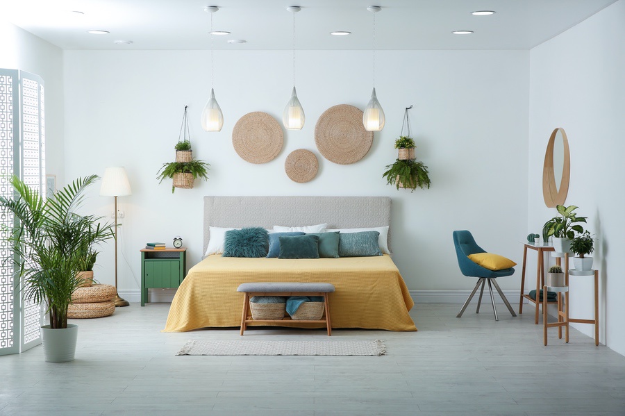 Xanh lá là màu sắc mang lại cảm giác tươi mát cho không gian phòng ngủ. Nó cũng có độ đa dạng tương đối để bạn lựa chọn như màu táo xanh, xanh bạc hà…Nhưng dù với bất kì màu sắc nào được lựa chọn cũng sẽ đem lại sức sống cho cả căn phòng. Sự pha trộn của xanh và tím đẹp lại cho căn phòng một cảm quan tuyệt vời. Đó là sự kết hợp hoàn hảo để tạo ra hiệu ứng vẻ bình yên, thanh bình.